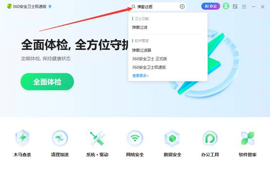 2、在打開的界面,搜索框里輸入【彈窗過濾】。
