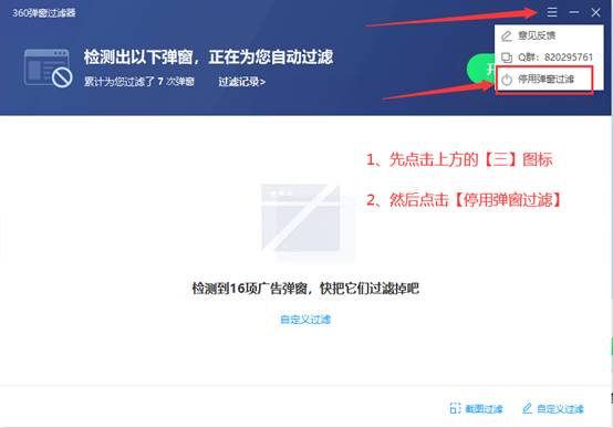5、出現(xiàn)如下界面代表關(guān)閉【彈窗過濾】完成。