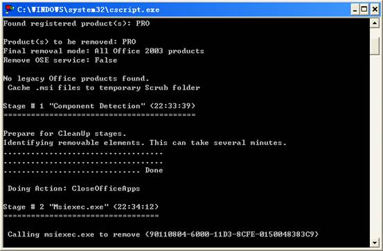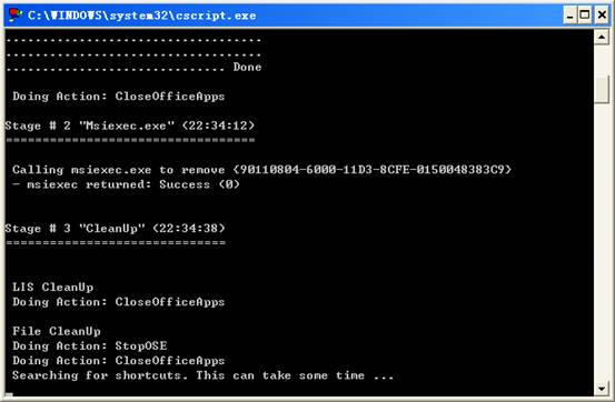 5、執(zhí)行完畢窗口會(huì)自動(dòng)關(guān)閉,窗口關(guān)閉后,就代表您的office程序已經(jīng)卸載成功了,可以進(jìn)行安裝Microsoft Office 2003的完整版本了。