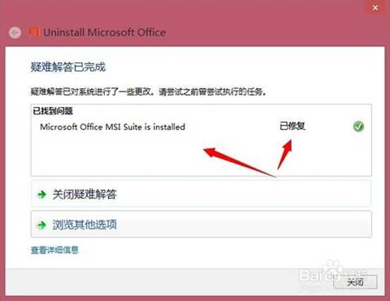 5、如果提示“已修復(fù)”這說(shuō)明你電腦上的OFFICE軟件已完整的卸載了?梢赃M(jìn)行安裝Microsoft Office 2003的完整版本了。