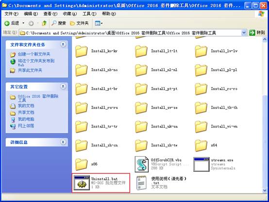 文件夾,打開(kāi)“Office 2016 套件刪除工具”文件夾。雙擊鼠標(biāo)運(yùn)行“Uninstall.bat”。