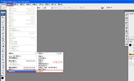 9、在打開的界面上方點(diǎn)擊“編輯”,然后最下面“首選項(xiàng)”,點(diǎn)擊右側(cè)的“文字”,
