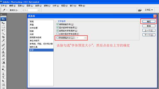 10、去除勾選“字體預(yù)覽大小”,然后點(diǎn)擊右上角的“確定”