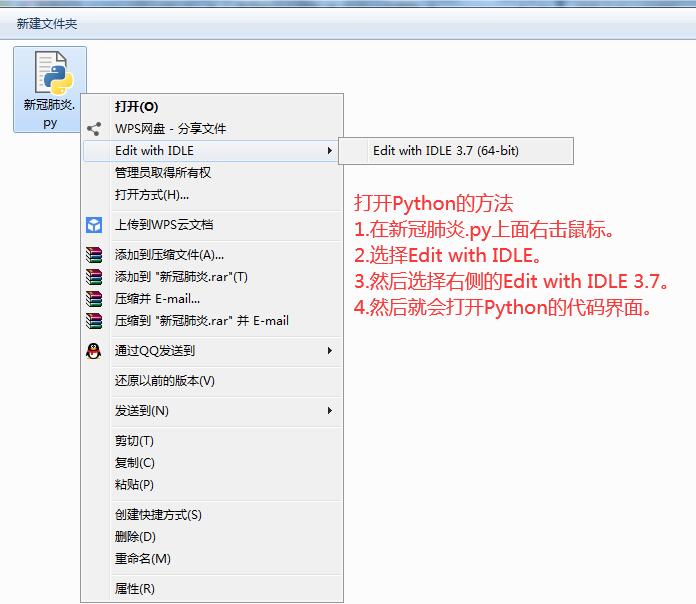【Python打開方法】:在.py文件上面右擊鼠標(biāo),選擇(Edit with IDLE)。