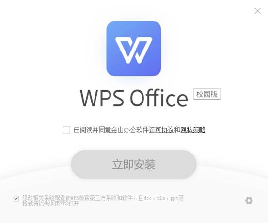 下載地址三(高速):點我下載 WPS2019【校園版】 安裝包
