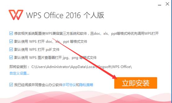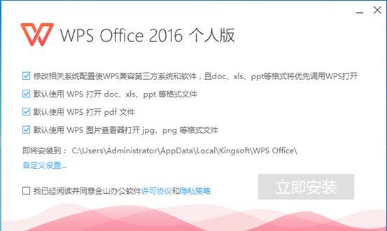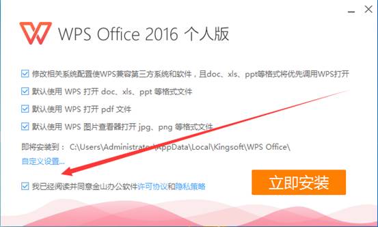3、勾選已閱讀并同意金山辦公軟件許可協(xié)議和隱私策略。