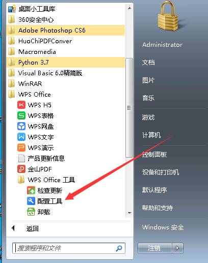 1.找到開始菜單下的(配置工具),