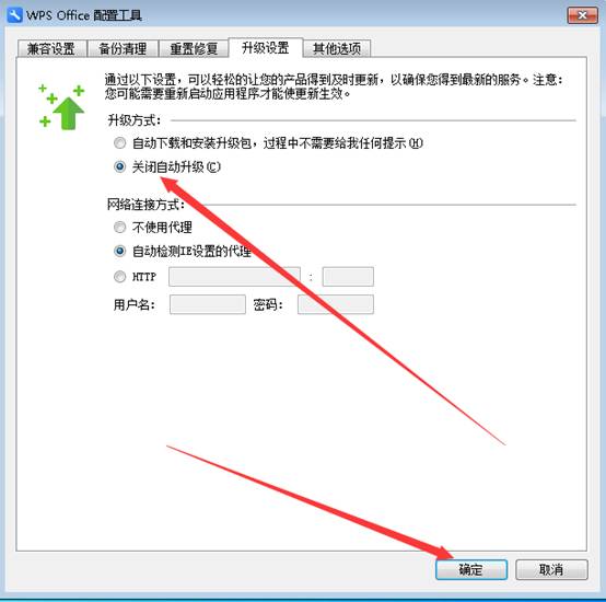 4.點擊關(guān)閉自動升級,然后點擊確定即可。