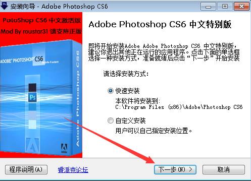 下載地址一(高速):點(diǎn)我下載 PhotoshopCS6 安裝包