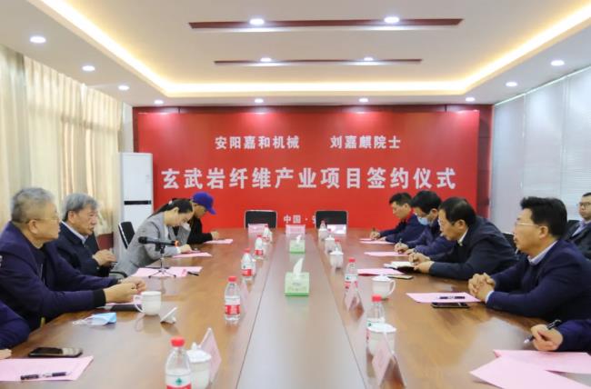 2021年10月17日上午,劉嘉麒院士受邀參加中國(guó)·河南招才引智創(chuàng)新發(fā)展大會(huì)“洹泉涌流·聚才興安 ”安陽(yáng)專(zhuān)場(chǎng)啟動(dòng)儀式,隨后赴安陽(yáng)嘉和機(jī)械有限公司正式簽約玄武巖纖維產(chǎn)業(yè)項(xiàng)目,并與管委會(huì)領(lǐng)導(dǎo)和企業(yè)負(fù)責(zé)人進(jìn)行座談交流。